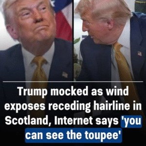 Donald Trump’s trip to Scotland turned into a spectacle after the wind blew his hair aside at Turnberry. The photos showed a patchy scalp and receding hairline,…