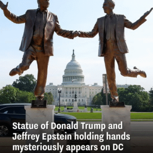 A 12-foot statue of Donald Trump and Jeffrey Epstein showed up in Washington, DC this week. It shows the two men smiling and holding hands like they…