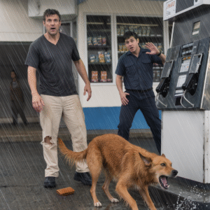 “At a gas station, an employee’s pants were ripped by a barking stray dog — everyone assumed chaos until they spotted something hiding in the darkness.”